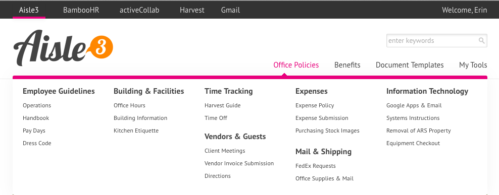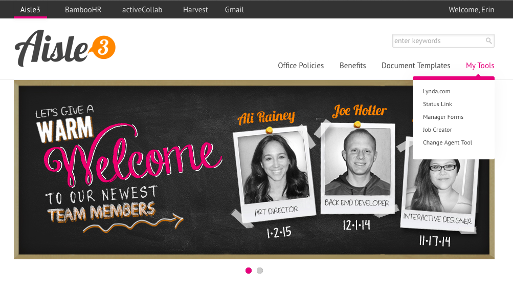 Aisle3 was an internal site that hosted agency content resources. This project was a re-launch for this site to begin acting as a hub of the company’s core intranet, a central location for content and interactive tools to support staff and managers.